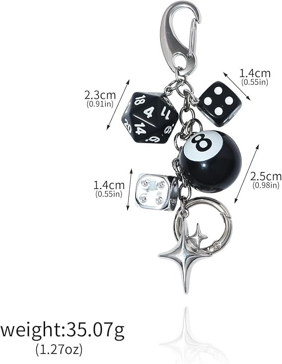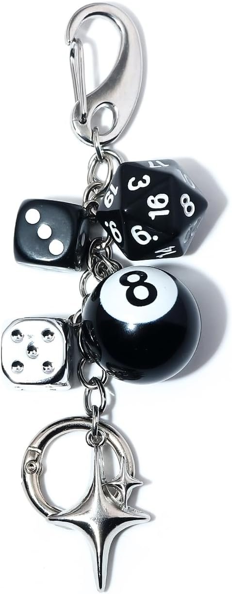 8 Ball Dice Charm Keychain – Cute Bag Purse Handbag Accessories – Y2K Aesthetic Key Chain for Women Men