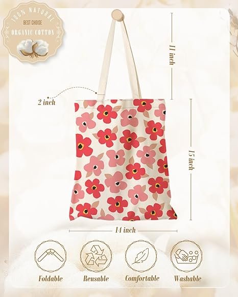 - Tote Bag for Women Made of Durable Canvas Material: This canvas tote bag is made of high-quality cotton canvas material and utilizes the heat sublimation process.It is soft,lightweight, and can be reused and washed repeatedly.The sturdy cotton canvas fabric and strong handles ensure durability even with daily wear and tear