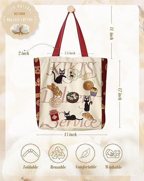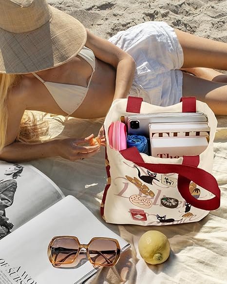 • [Multi-occasion Using]-Measuring at 15*17*0.4 inch(Shoulder strap length: 11inch), designed with enough space to store all your essentials, including books, laptops, tablets, and more. Whether you’re traveling, going to the beach, studying in the library, working, shopping, exercising, going out for leisure, or grocery storage, this cute reusable cotton canvas bag can meet your needs.