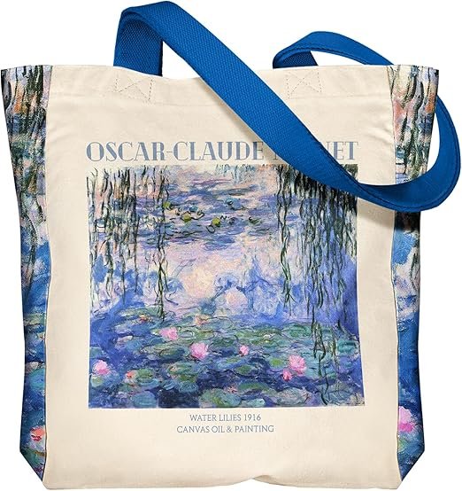 Aesthetic Heavy Canvas Tote Bag – with Pocket for Women Large Size 14”×16”×3.5” Cloth Cotton Bags for Shopping(Water Lily)