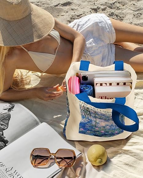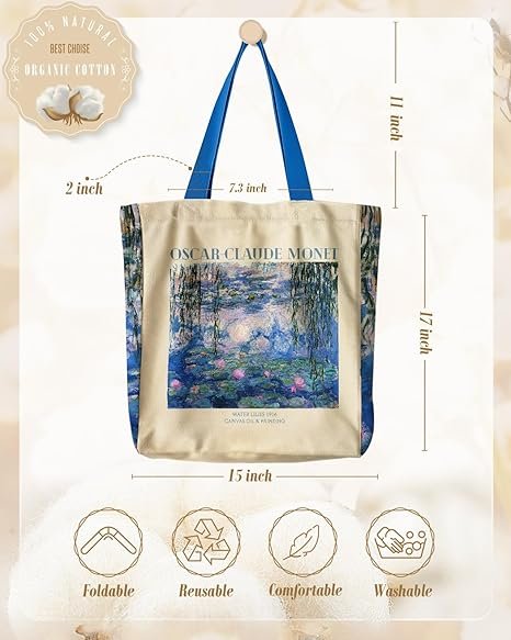 - [Multi-occasion Using]-Measuring at 15*17*0.4 inch(Shoulder strap length: 11inch), designed with enough space to store all your essentials, including books, laptops, tablets, and more. Whether you’re traveling, going to the beach, studying in the library, working, shopping, exercising, going out for leisure, or grocery storage, this cute reusable cotton canvas bag can meet your needs.