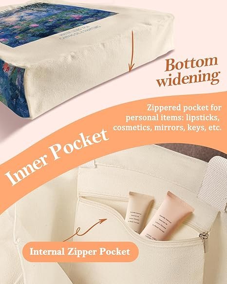 - [Zipper Inner Pocket Design]-This foldable canvas cloth totes bag with a zipper combines practicality and fashion, ideal for stylish women. Its chic and casual style, along with a vintage design, complements various outfits, adding versatility to your wardrobe. The large zipper adds style and functionality, while the zippered inner pocket offers convenient organization.