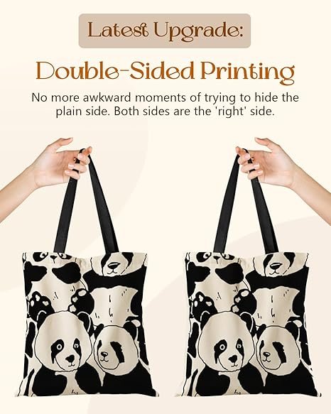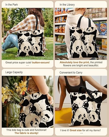Aesthetic Tote Bag for Girls – with Magnetic Buckle and Zipper Inner Pocket for Women Lady Canvas Cotton Tote Bag(Full Panda)
