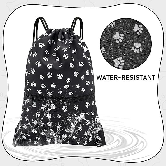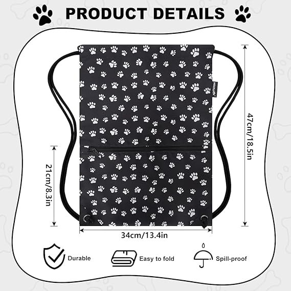 Drawstring Backpack Bag Sport Gym Sackpack(Black Background White Dog Paw Prin)